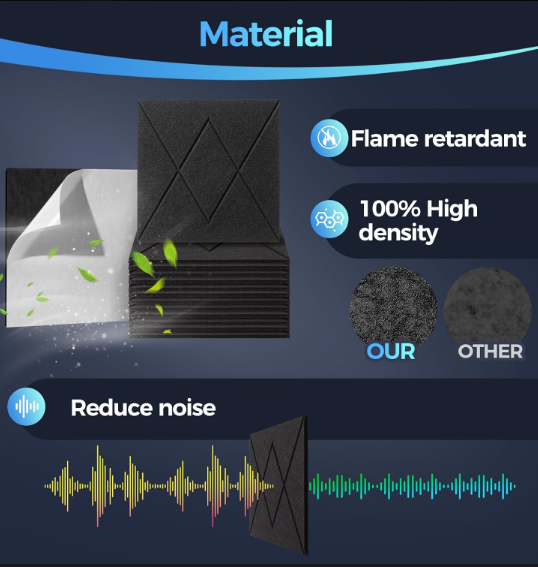 These sound insulation panels come in 12/5-piece sets, with strong self-adhesive backing for easy wall/ceiling installation. High-density material blocks noise and reduces echo, perfect for homes, offices, or studios to create a quieter space.