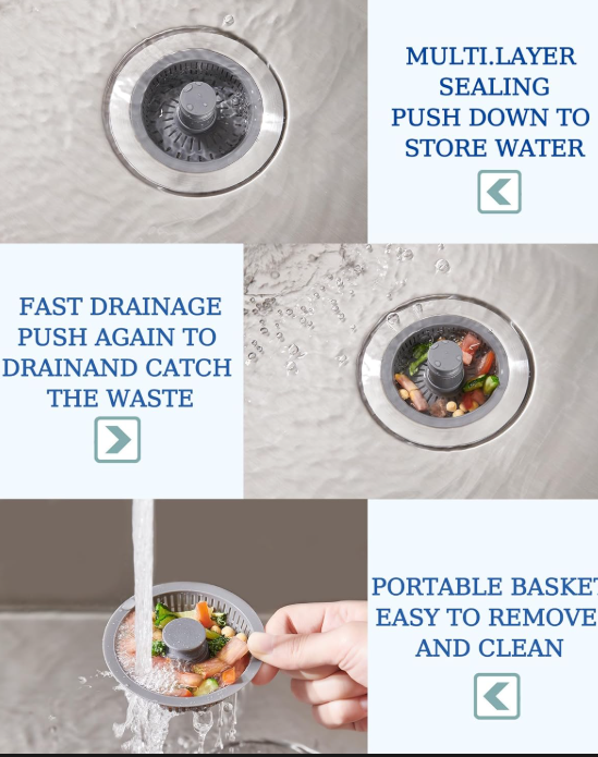 3-in-1 Pop-Up Kitchen Sink Drain Filter Plug | Anti-Clog, Strainer & Stopper | Easy to Install/Clean