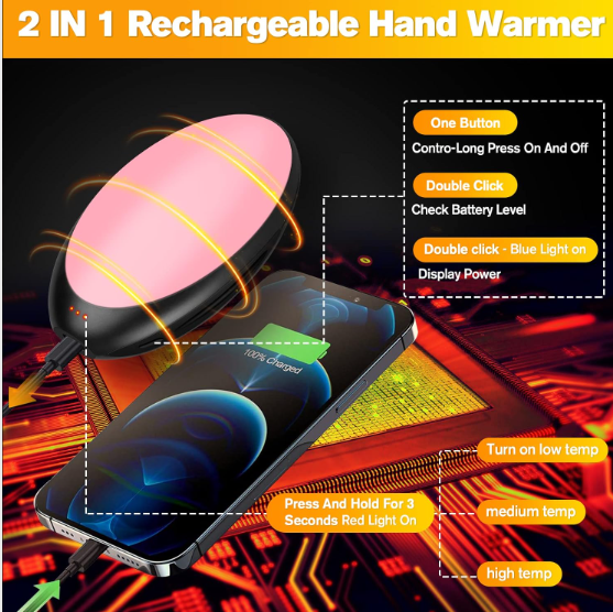 1. Dual-purpose design: this 5200mAh hand warmer doubles as a phone charger for emergencies. It’s lightweight, fits easily in pockets, and offers steady heat for hours—perfect for commutes, camping, or winter trips where you need warmth and device backup.
