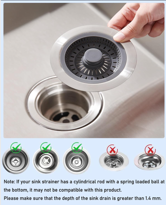 3-in-1 Pop-Up Kitchen Sink Drain Filter Plug | Anti-Clog, Strainer & Stopper | Easy to Install/Clean