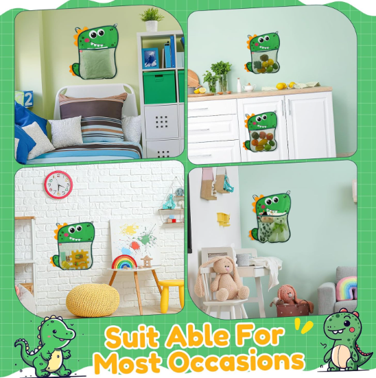 2-Piece Cute Dinosaur Bathroom Mesh Storage Bags | Suction Cup, Quick-Dry | Kids’ Bath Toy Organizer