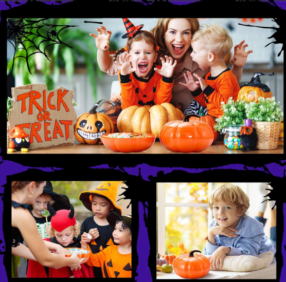 2-Piece Halloween Pumpkin Tray Set | Bamboo Candy/Snack Holders | Trick-or-Treat & Party Decor