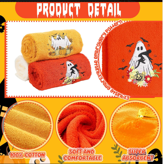 3-Piece Halloween Handkerchief Set | Cute Ghost/Pumpkin Embroidery | Cotton, Reusable