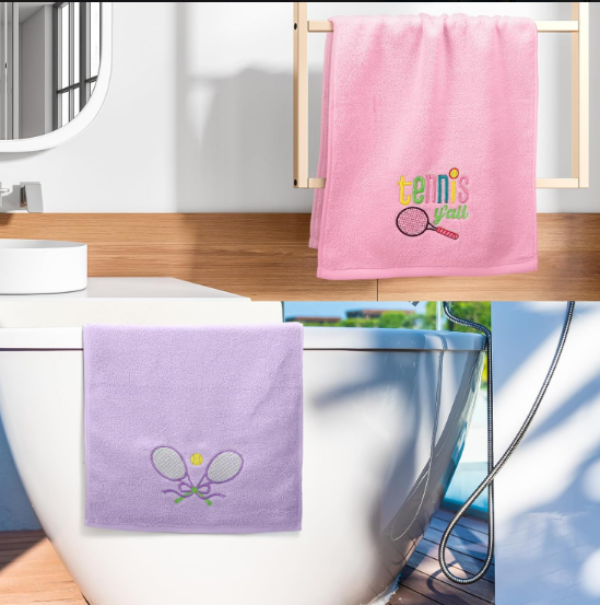 2-Piece Tennis Towel Set | Fun Embroidery | Soft Absorbent, Tennis Lover Gift