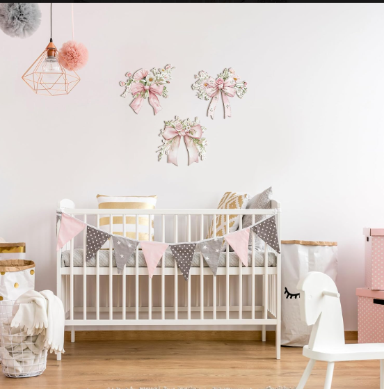 3-Piece Ink Bow Wooden Hanging Signs | Hand-Painted, Rustic Style | Home/Entryway Decor